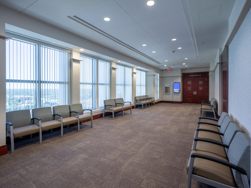 The 13th floor of the courthouse was an underutilized area that now stands transformed into a vibrant hub for judicial activities. This build-out included the addition of multiple courtrooms, hearing rooms, and jury deliberation rooms, designed to meet the needs of the Orange County judicial system and its constituents. By optimizing this space, we are ensuring that the courthouse can better serve the public and improve the efficiency of legal proceedings.